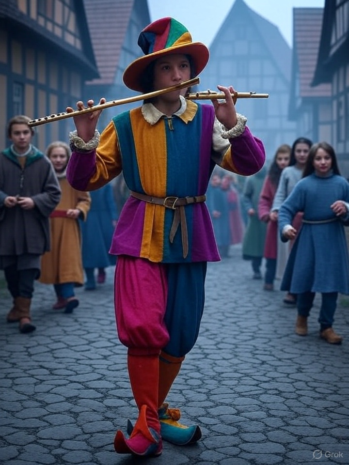 これを元にグリム兄弟が『笛吹き男』という題名で作品をつくり、その30年後にはロバート・ブラウニングが『ハーメルンのまだら色の服を着た笛吹き男』という詩を作る